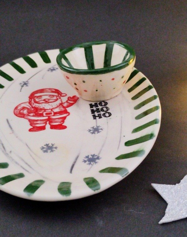 Bandeja y cuenco de cerámica, elaboración propia, decorado con la técnica de serigrafía en bajo cubierta.